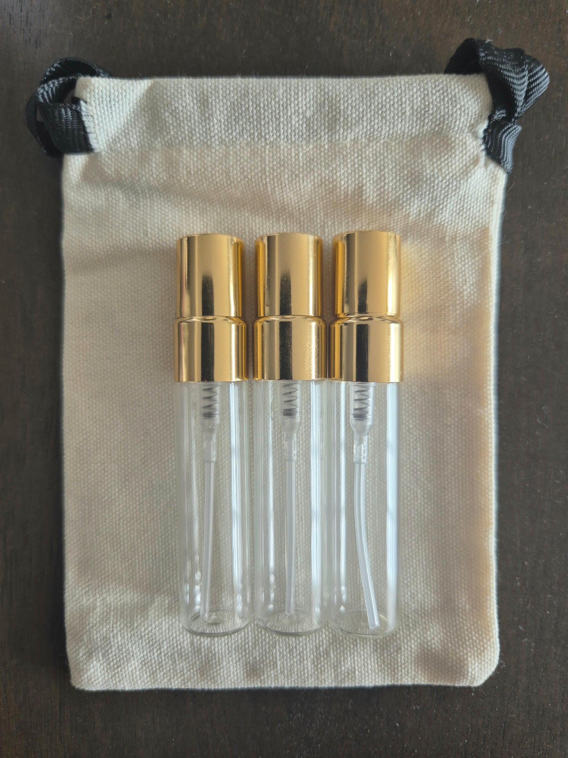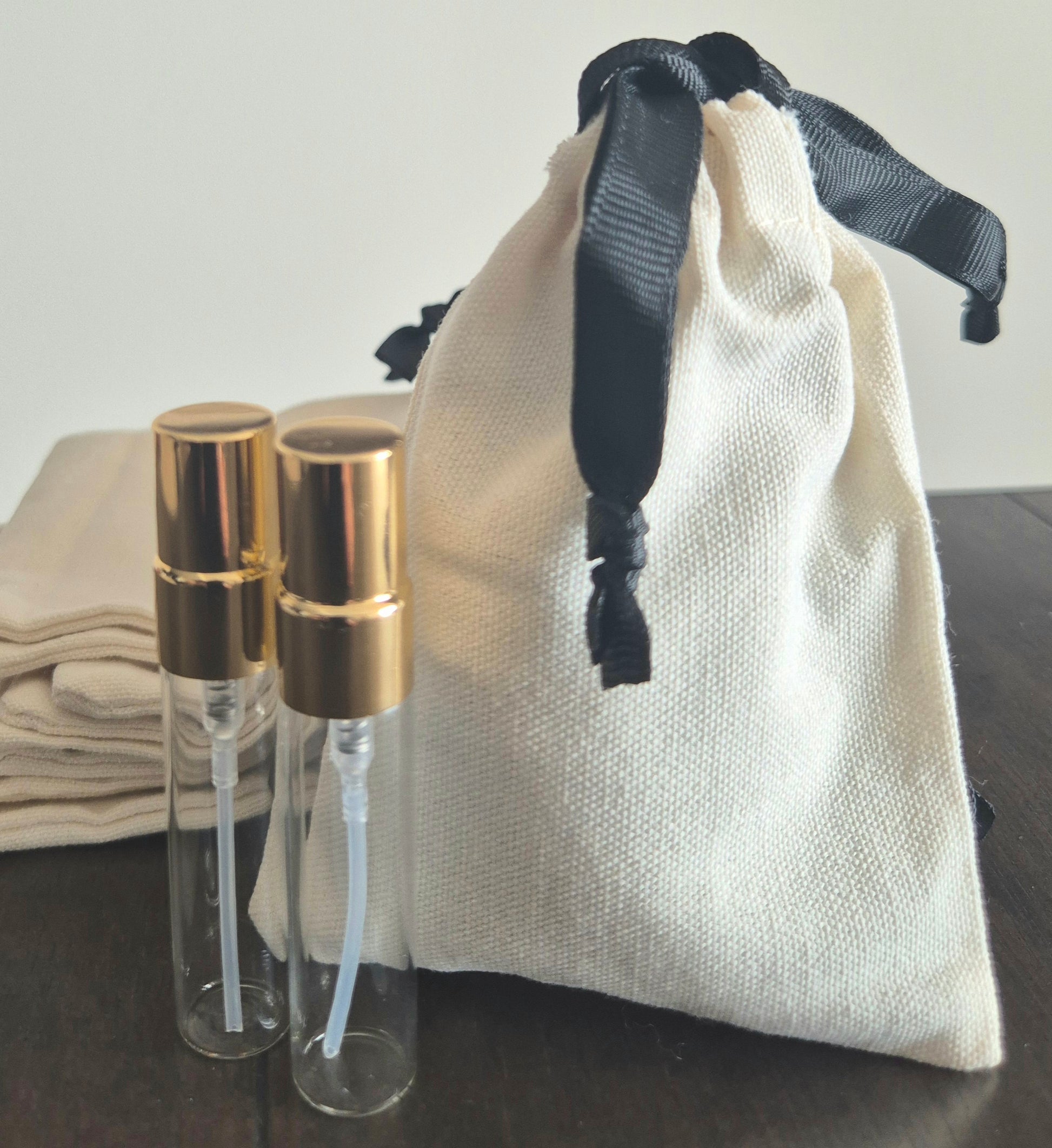 Regala los decants que te gusten en una bolsa de lona blanca.